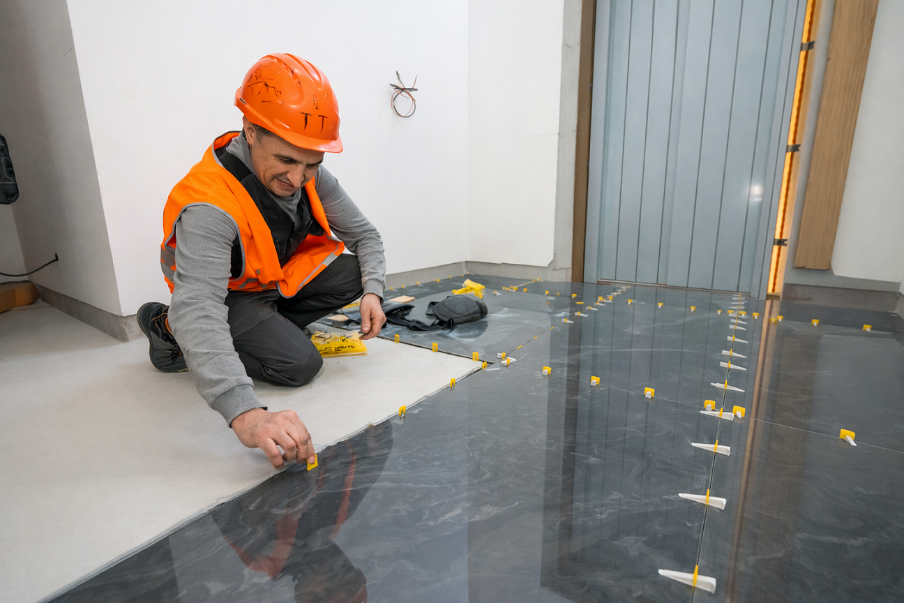 - Выполнили укладку напольной плитки в холлах на 30%.