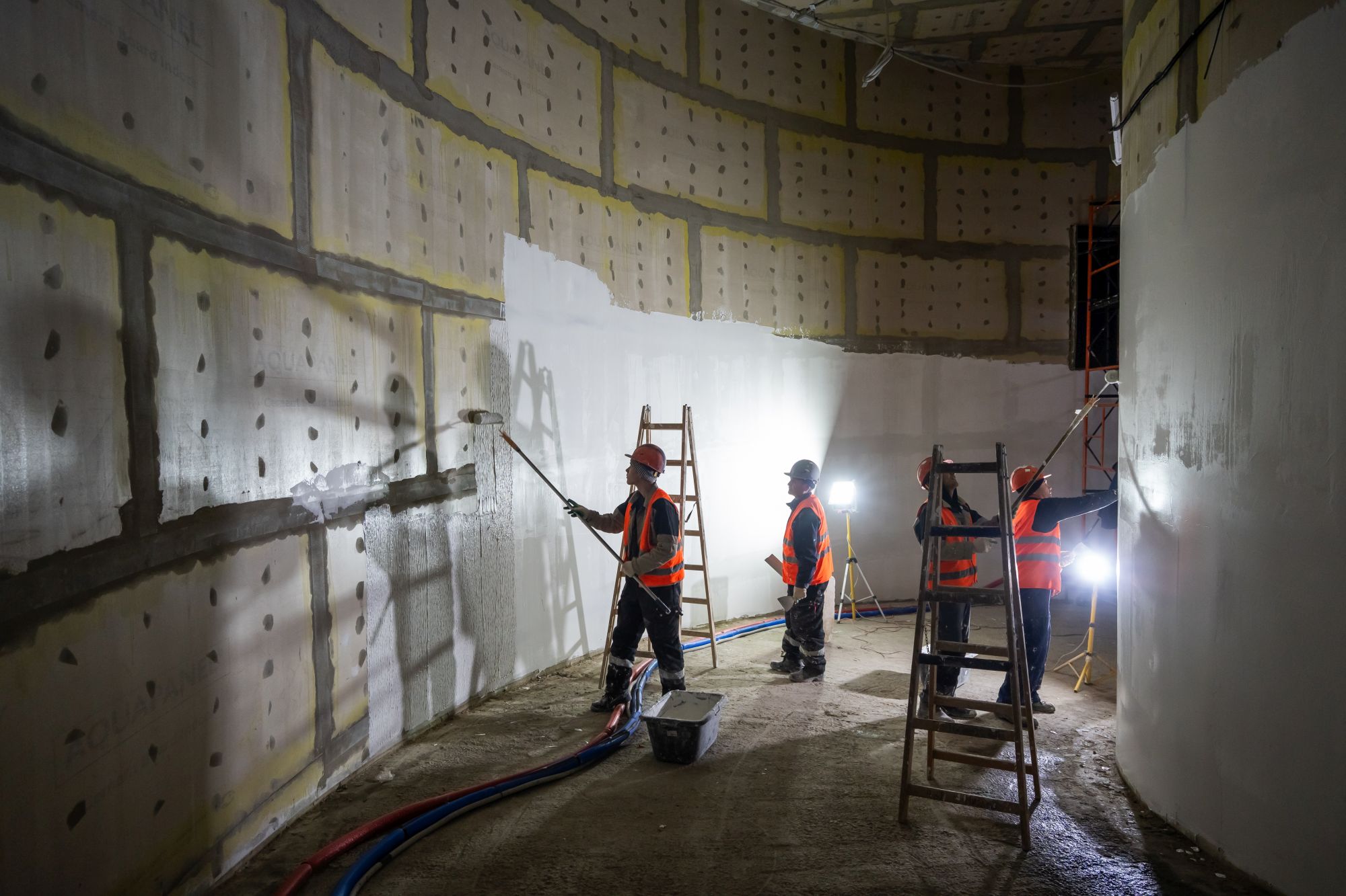 - Выполнили гидроизоляцию подземной части здания на 80%.