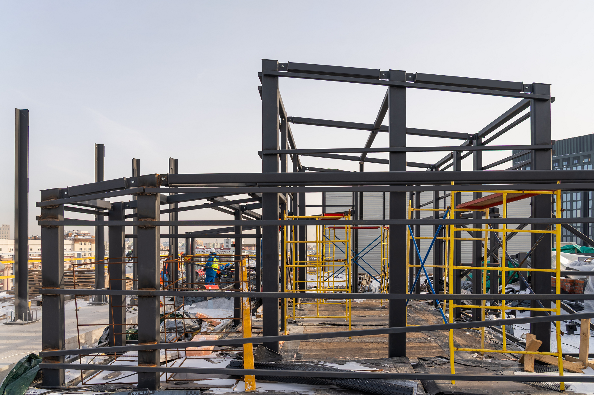 - Смонтировали 75% металлоконструкций на кровле здания.