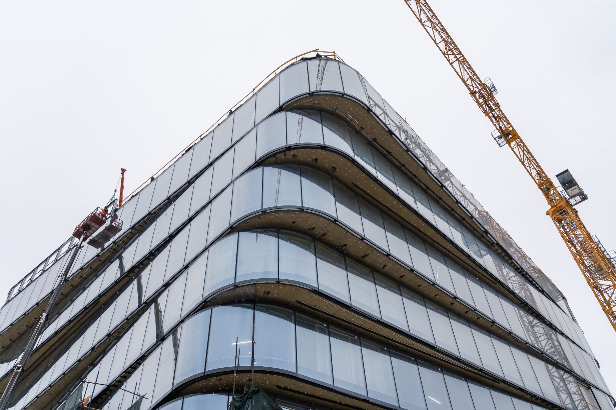 - Смонтировали каркас фасада для установки оконных систем на втором и третьем этажах. Готовность — 13%.